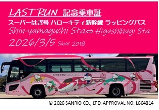 ご利用いただいた皆さまに感謝の気持ちを込めて、スーパーはぎ号の「ハローキティ新幹線 ラッピングバス」での最終運行日に「LAST RUN 記念乗車証」を配布いたします。