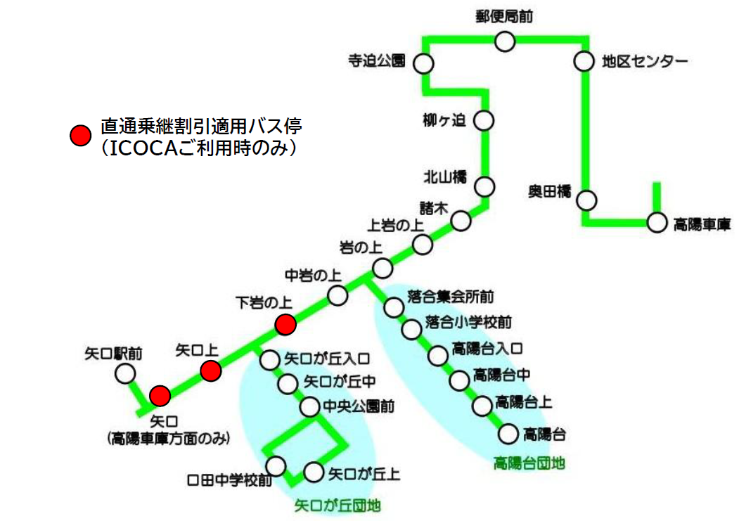 ※「横川駅」「別院前」「広瀬町」~「矢口が丘・高陽台」では、直通乗継割引は適用されません。