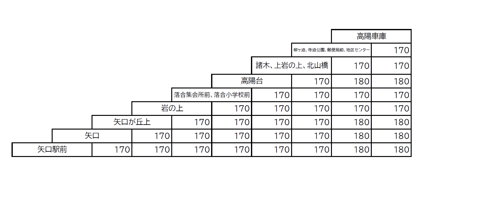 6.実証運行便運賃表(矢口駅前⇔矢口が丘・高陽台経由⇔高陽車庫)