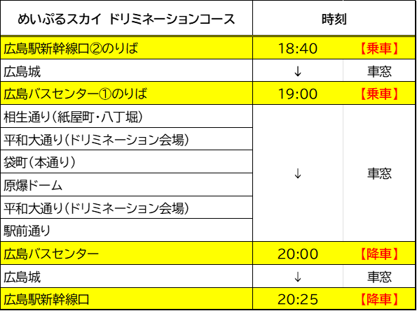 2025年12月6日(土)より広島の冬の風物詩である「ひろしまドリミネーション」の眺めを2階建てオープンバス「めいぷるスカイ」の車窓からお楽しみいただく定期観光バス「めいぷるスカイ ドリミネーションコース」の運行を開始します。
