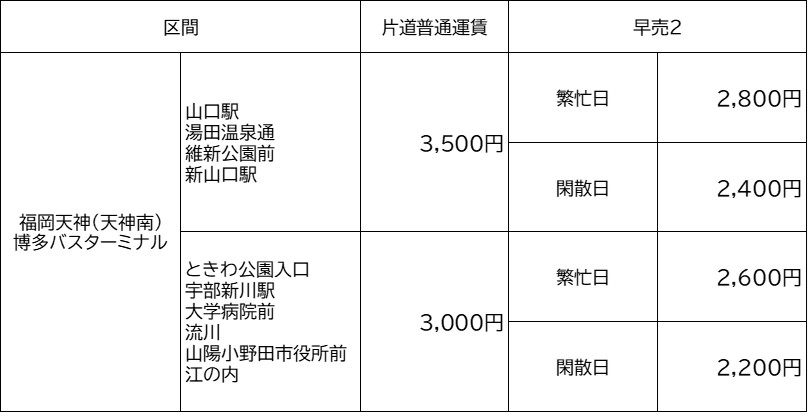 3/1(日) 山口・宇部~福岡線(福岡山口ライナー)の運賃改定について