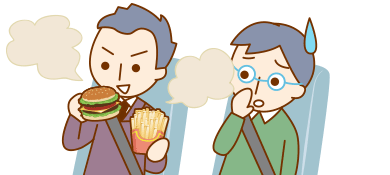 バス車内への飲食物の持ち込みは可能です。飲食物の匂い等について、周りのお客様へのご配慮をお願いいたします。