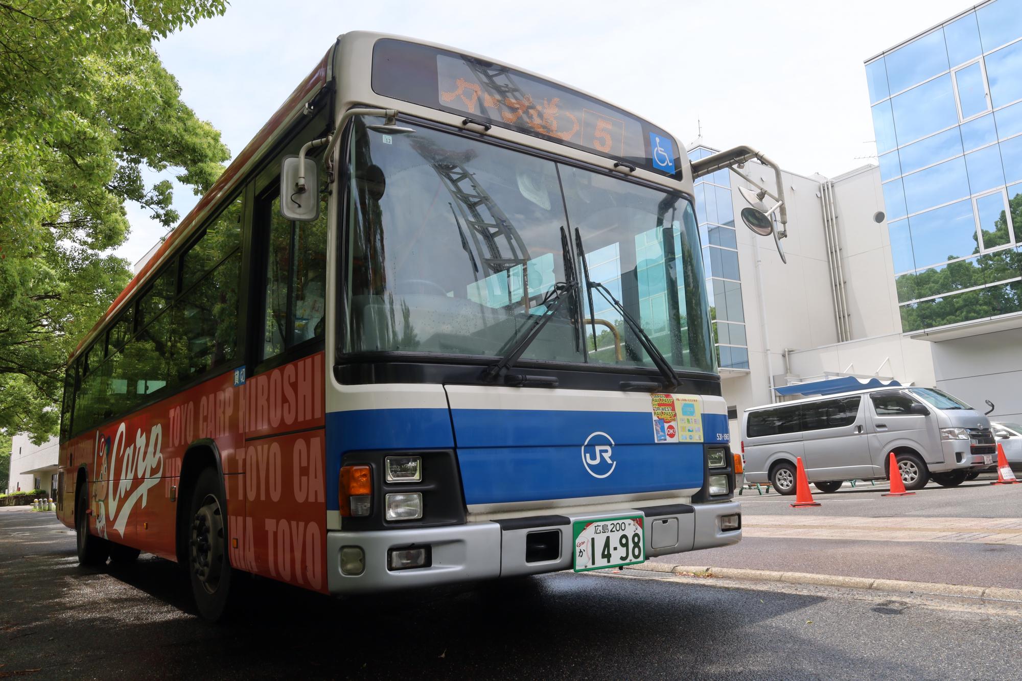 方向幕と呼ばれる行先表示は番組特別仕様の「カープ道」になっています。