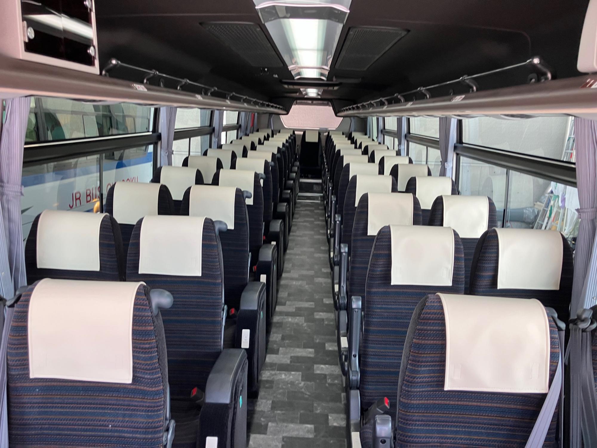 この度、弊社では貸切バスの新車を2両導入しました。最新の車内設備や先進安全装置を備えており、安全・安心・快適な貸切バスでのご旅行をサポートいたします。