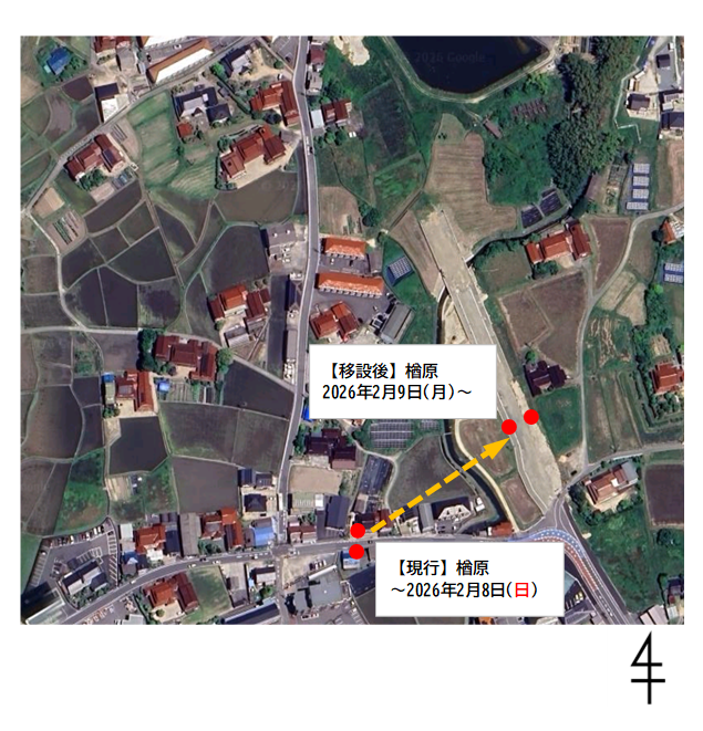 丸山楢原線の新設される道路へ移設いたします。