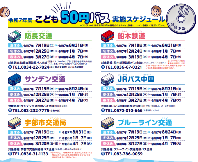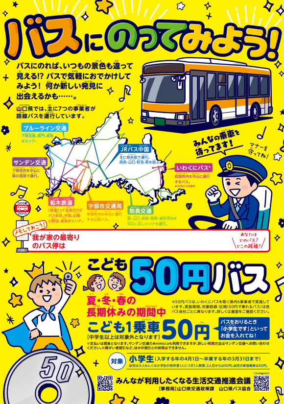 山口県 こども50円バスの実施について