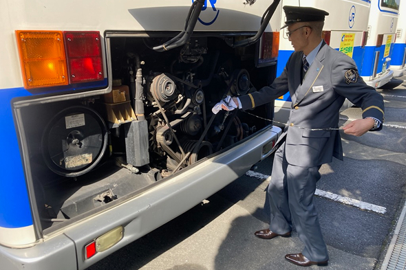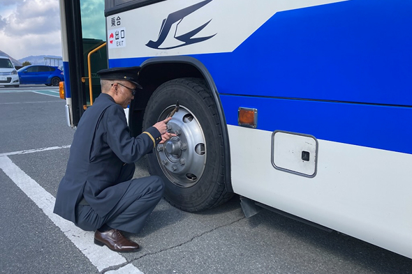 予期せぬ事故及び車両故障を防ぐため、運行開始前、運行終了後及び運行途中において、乗務員が車両の点検を確実に実施しています。