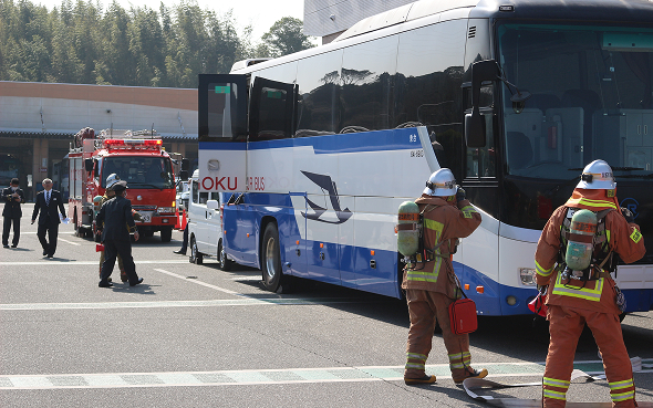 全社員を対象にあらゆる場面を想定し、異常が発生した際の対応等、実践的な訓練を実施しています。(写真は車両火災対応訓練)